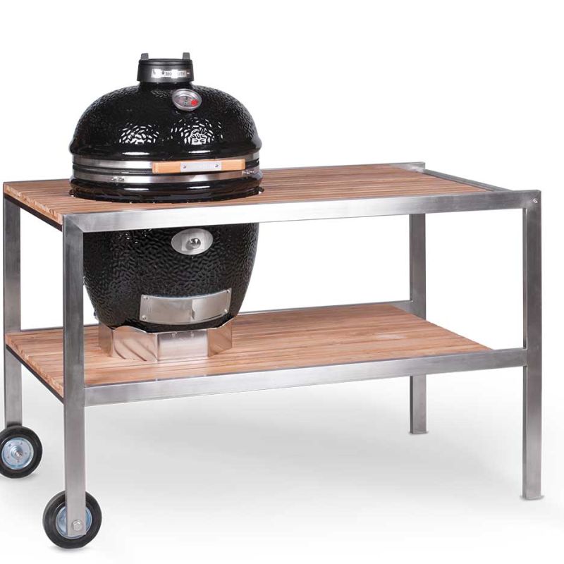 Maak van je Monolith een volwaardige buitenkeuken met deze stijlvolle Monolith Classic teakhouten en RVS tafel. Deze robuuste werktafel is geschikt voor zowel de Monolith Classic als de Monolith LeChef en biedt volop ruimte voor voorbereiding, accessoires en mobiliteit.