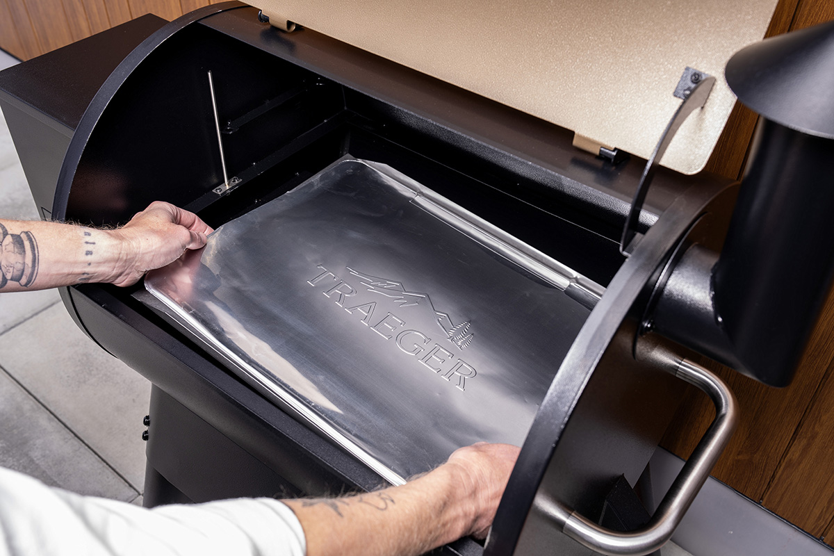 De pasvorm is afgestemd op Traeger modellen. Losse folie of alternatieve liners wordt afgeraden, omdat dit de werking en luchtstroom in de BBQ kan beïnvloeden.