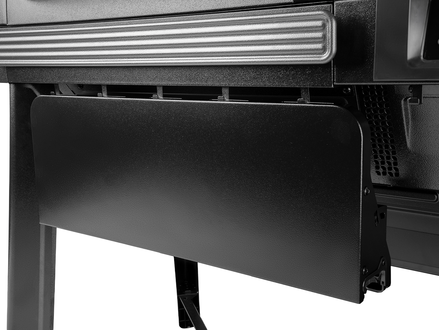 P.A.L. staat voor Pop-And-Lock, een accessoiressaansluitsysteem dat magnetisch op de rail vastklikt zonder gereedschap. De kleine front shelf klap je uit wanneer je extra ruimte nodig hebt en vouw je weer in als je klaar bent met bereiden. De kleine front shelf biedt een stabiel oppervlak voor het voorbereiden van ingrediënten, het rusten van vlees of het neerzetten van spatels, borden en sauzen. Dankzij het magnetische P.A.L.-systeem kun je de plank eenvoudig op de gewenste plek plaatsen en weer verwijderen.