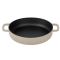 Deze geëmailleerde gietijzeren skillet combineert de warmtevasthoudende eigenschappen van gietijzer met het gebruiksgemak van emaille. De emaillelaag beschermt tegen roest en maakt de pan eenvoudiger te reinigen. Het oppervlak zorgt voor een goede korst op vlees, vis en groenten.