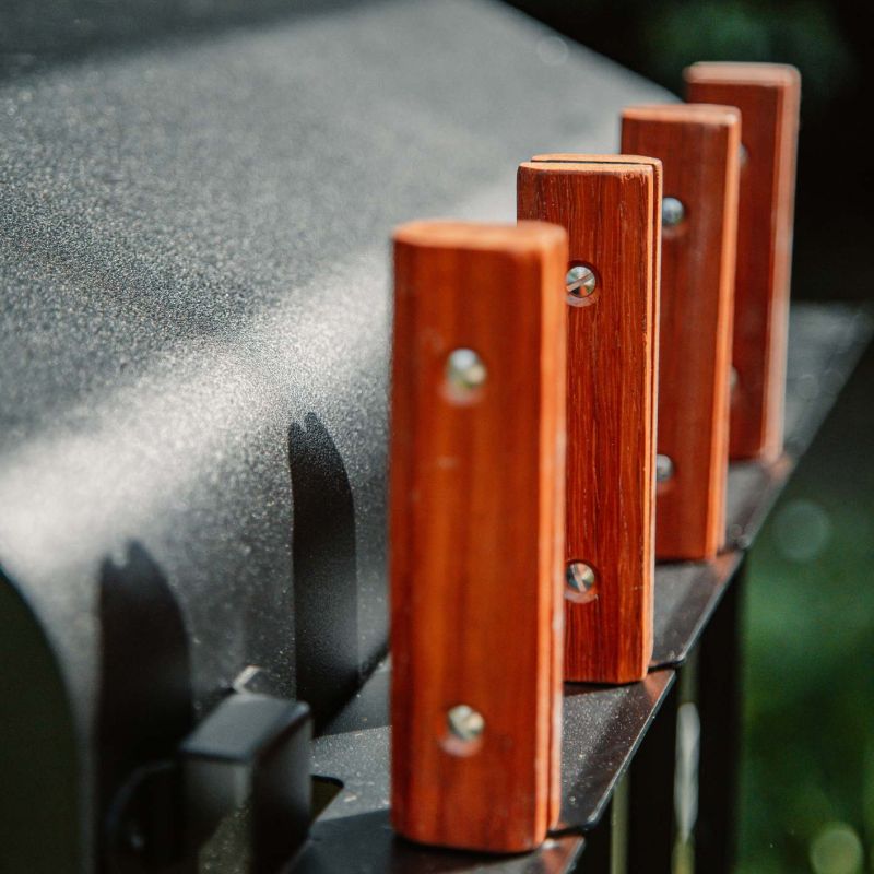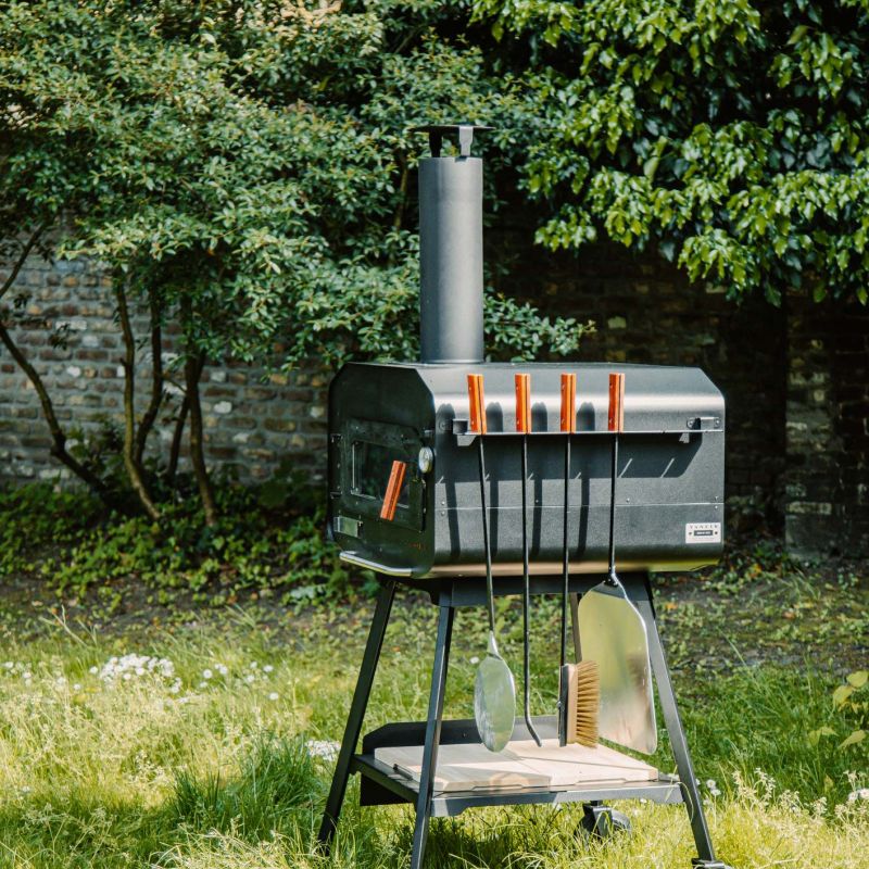 Dit pakket met Vonken pizza accessoires bevat alles wat je nodig hebt voor een knapperige pizza en vele andere gerechten: pizzaschep, ronddraaischep, ovenborstel, pook en uitneembare bak waar alle accessoires gemakkelijk in passen. Gemaakt van roestvrij staal, gerecycled hardhout en aluminium. Alle accessoires zijn gepoedercoat in een hittebestendige coating. Elke tool is compatibel met al onze Vonkens. Er zit een handige pizzaschep bij voor pizza en brood. De pook is erg handig om kolen of houtblokken in de hete oven te verleggen. Met de verstelbare ovenborstel kan je de stenen vloer perfect borstelen of vetresten afschrapen. De stalen haren zorgen voor een harde borstel die het bakoppervlak niet beschadigt. Je veegt de oven moeiteloos schoon, zelfs als het 500°C is. Veeg as en kolen aan de zijkanten als je pizza of brood wilt bakken of als je een ovenschotel wilt bereiden. Ten slotte helpt de ronddraaischep je bij het omdraaien van je pizza terwijl die krokanter wordt in de oven. U kunt de ophangtray aan beide kanten van uw vonken monteren. Dankzij de uitstekende isolatie wordt dit rek nooit warm. Compatibel met elke Vonken-oven.
