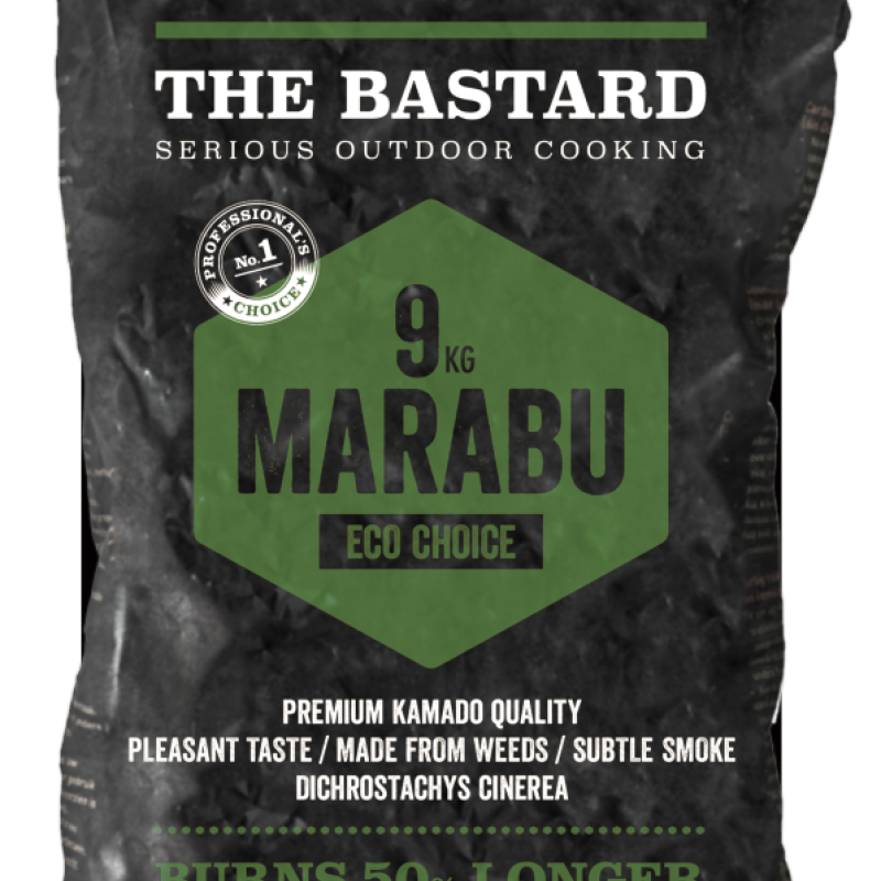 The Bastard Marabu houtskool wordt geleverd in een stevige zak van 9 kg. Het aansteken duurt enkele minuten, maar eenmaal op temperatuur biedt deze houtskool een uitzonderlijk lange en efficiënte verbranding. Perfect voor kamado’s en andere houtskoolbarbecues!