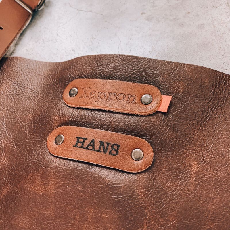 Dit leren schort voor dames met naam kan gepersonaliseerd worden en is daarmee ook zeer geschikt als cadeau. Een persoonlijk en tijdloos item voor iedereen die graag buiten kookt of in de keuken staat.