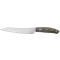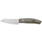 De ergonomisch gevormde handgreep van dit schilmes is vervaardigd uit gelaagd pakkahout, dat is gestabiliseerd met natuurlijke, niet-fenolische hars. Dit maakt het materiaal sterker en waterbestendiger dan onbehandeld hout, terwijl het zijn warme, authentieke uitstraling behoudt. De verhoogde plaatsing van de greep en de subtiele controlepunten zorgen voor een comfortabele en precieze grip.