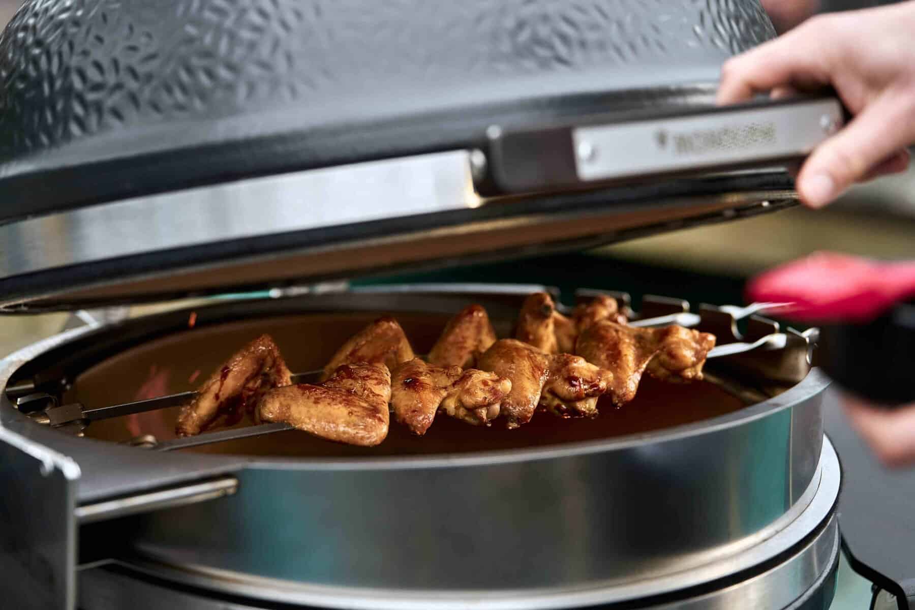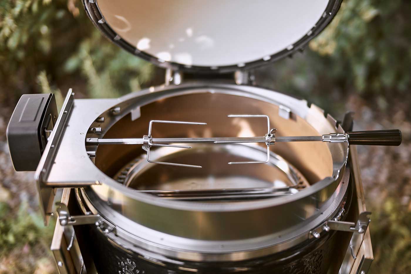 Met de Monolith Classic rotisserie voeg je een extra dimensie toe aan je keramische barbecue. Dankzij het slimme, wigvormige opzetstuk kun je perfect kip, gyros of rollade bereiden met het deksel gesloten – en dus met behoud van warmte en smaak.
