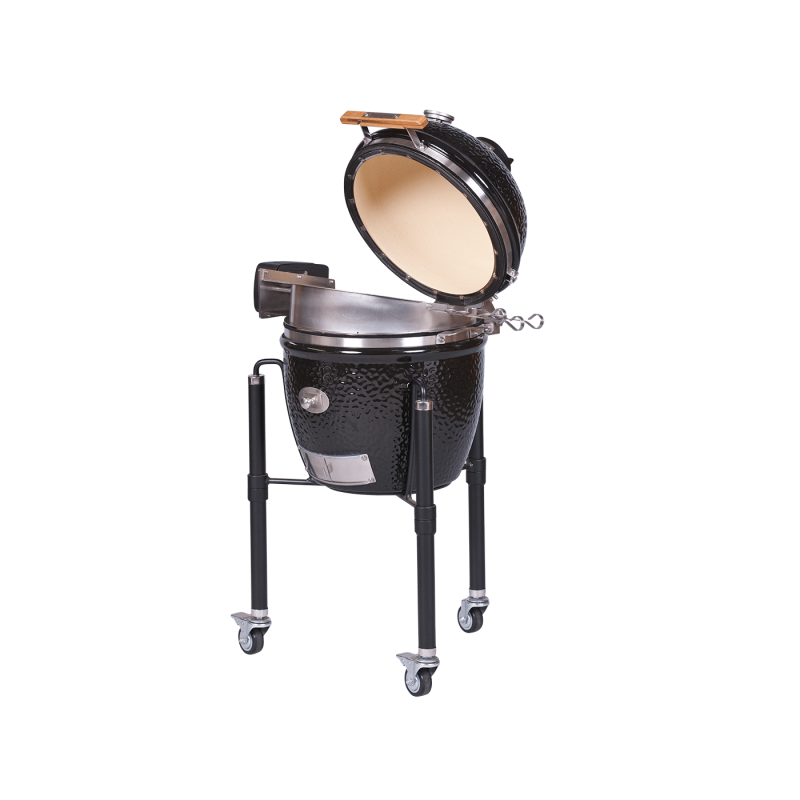 Deze slimme uitbreiding maakt het mogelijk om heerlijke gerechten aan het spit te bereiden – van sappige kip tot gegrilde groentespiesjes. Dankzij het compacte ontwerp en de slimme pasvorm kun je zelfs met gesloten deksel grillen, waardoor je optimaal gebruikmaakt van de hitte in je kamado.