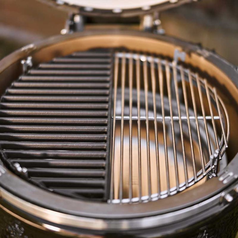 Dankzij de halfronde vorm kun je dit rooster combineren met een roestvrijstalen rooster, een gietijzeren plancha of een tweede gietijzeren rooster. Zo wissel je moeiteloos tussen direct en indirect grillen, of creëer je meerdere temperatuurzones op je Monolith LeChef.