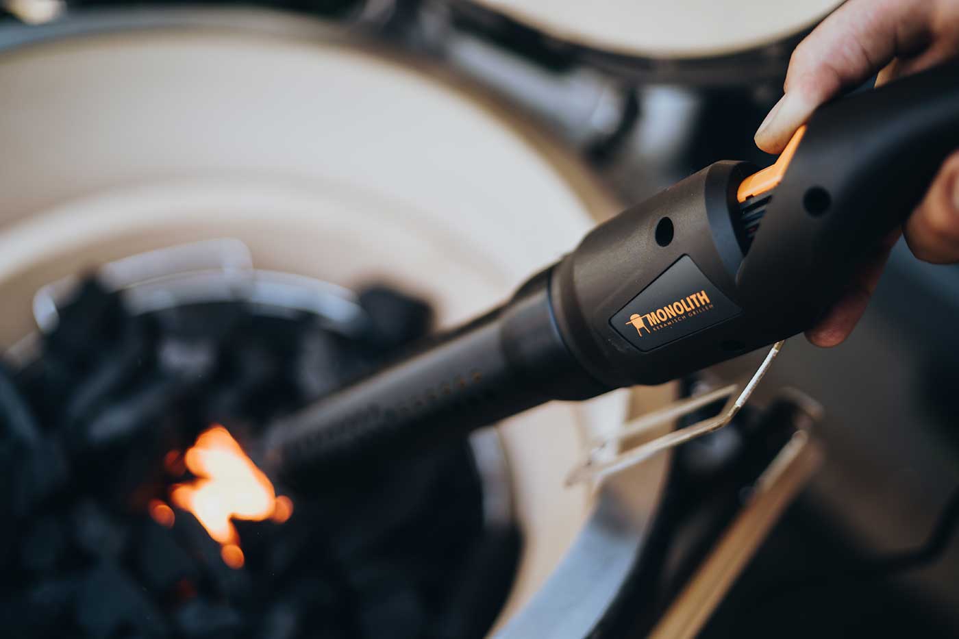 De Monolith Mono Lighter is dé aansteker voor wie veilig, snel en schoon wil barbecueën. Met een krachtige straal hete lucht krijg je jouw houtskool binnen 60 seconden aan het gloeien – zonder open vuur en zonder chemische aanmaakmiddelen.