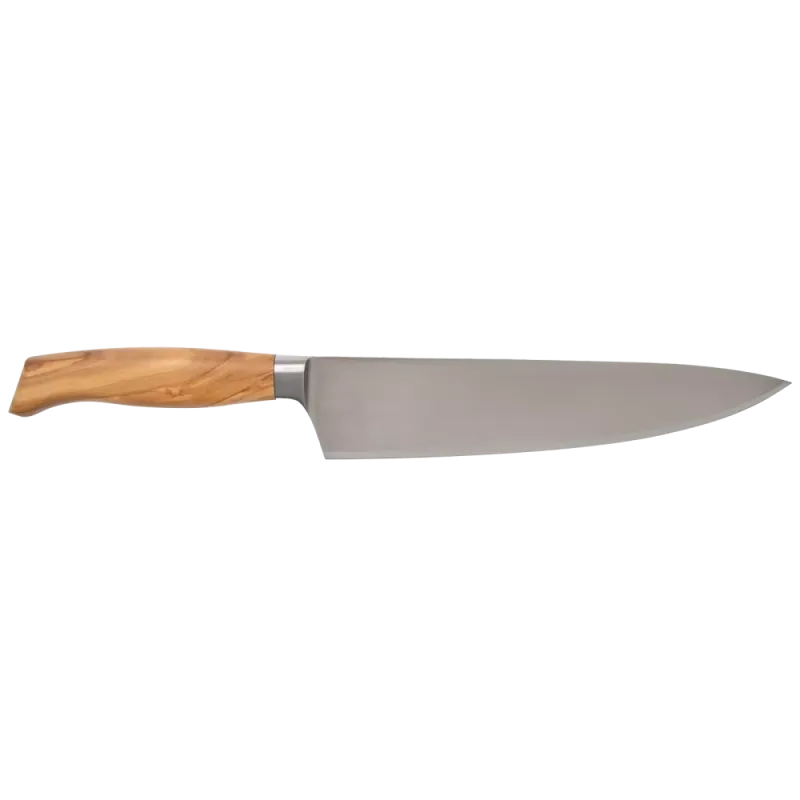Het Messermeister Oliva Luxe Chef’s Knife is het werkpaard van alle messen. Je zult naar dit mes neigen bij het uitvoeren van 90% van je culinaire taken. Het heeft een hooggebeeldhouwde handgreep van Italiaans olijfhout, bevestigd aan een handgesmeed lemmet. Het is geslepen tot een dun profiel om een vlijmscherpe rand te creëren. Met dit mes kun je hakken, snijden, in blokjes snijden en hakken zonder vermoeid te raken.