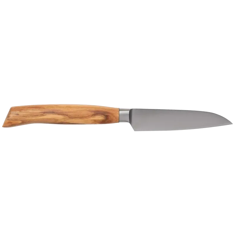 - Het Duitse lemmet, vervaardigd uit een 1.4116 roestvrije koolstoflegering, is bestand tegen vlekken en corrosie, sterk en duurzaam, behoudt zijn scherpte en is gemakkelijk te herslijpen tot een vlijmscherpe rand.