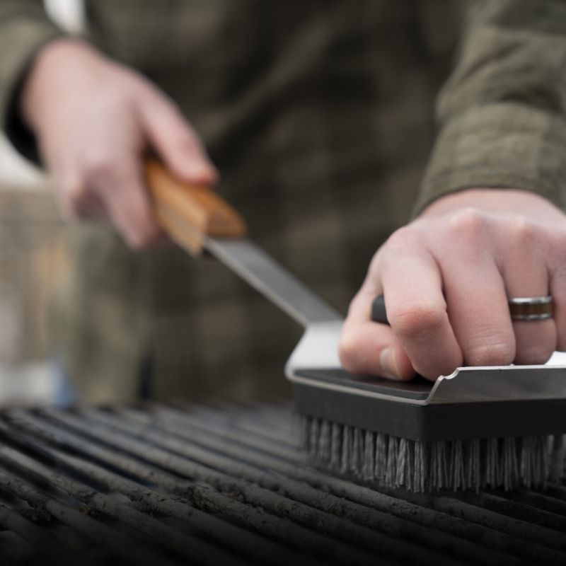Houd je grillroosters schoon en in topconditie met de Traeger BBQ-reinigingsborstel.
