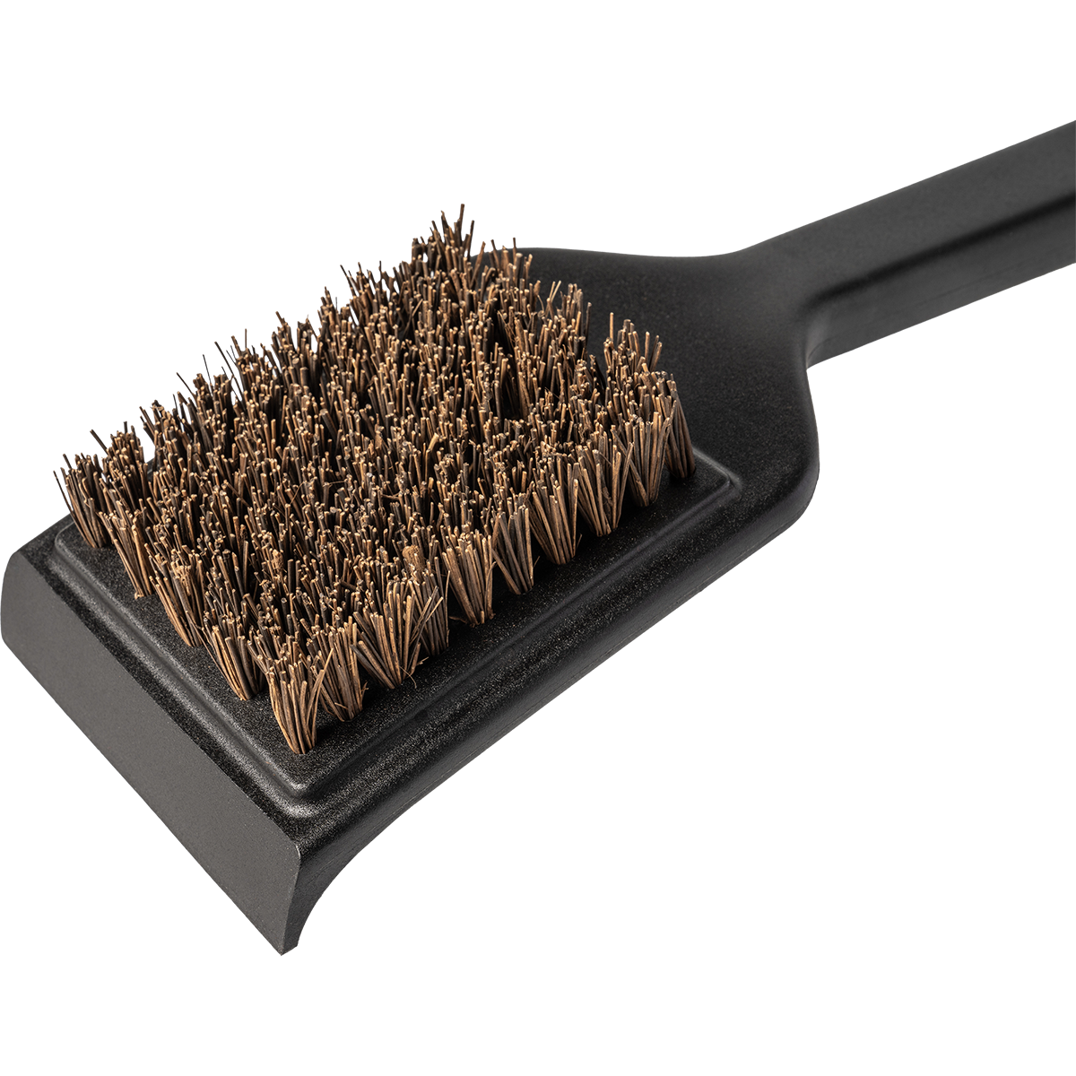 De borstelharen zijn gemaakt van zware Palmyra palmvezels. Deze vezels zijn abrasief genoeg om aangekoekte etensresten van koude roosters te verwijderen, maar ook hittebestendig zodat je roosters kunt schoonmaken wanneer ze warm zijn, bijvoorbeeld vóór een BBQ-sessie.