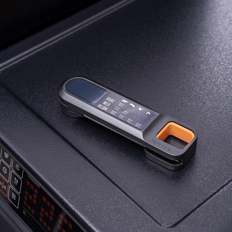 De behuizing is voorzien van een magneet, zodat je de thermometer eenvoudig aan metalen oppervlakken kunt bevestigen. Daarnaast is hij ontworpen om te hangen aan een Traeger P.A.L. haak, zodat hij altijd binnen handbereik is.