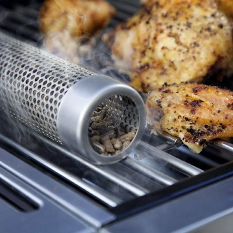 De tube zorgt ervoor dat de houtsnippers of pellets niet onmiddellijk verbranden, maar langzaam gaan smeulen, waardoor ze een mooie rook creëren en geen extra warmte toevoegen. De tube is ideaal voor langere low-and-slow sessies.