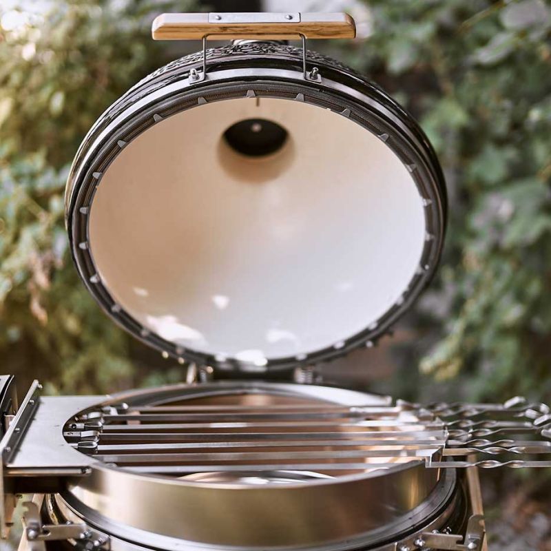 Met de Monolith LeChef rotisserie bereid je eenvoudig kip, gyros, rollades en andere gerechten aan het spit – zelfs met de deksel gesloten. Dankzij het wigvormige opzetstuk blijft de kamado goed afsluitbaar en behoud je optimale controle over temperatuur en rookcirculatie.