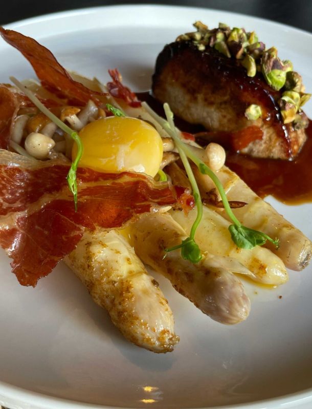 Geniet van de combinatie van speenvarken, Ras el Hanout asperges en pistache. Een heerlijk gerecht dat je smaakpapillen zal verwennen met zijn perfecte balans tussen smaken en texturen.
