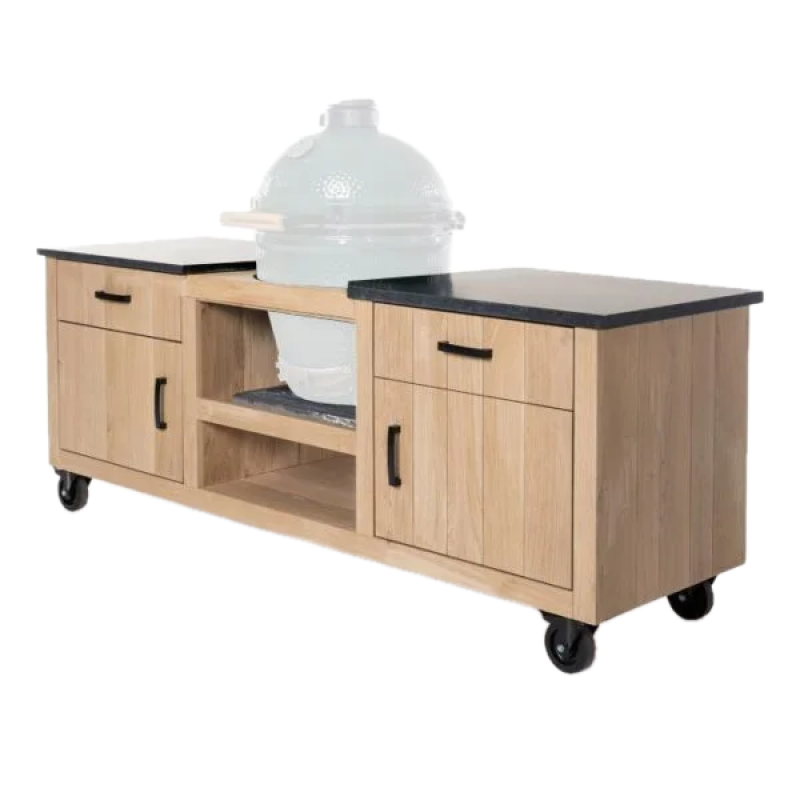 Het 3 cm dikke granieten werkblad geeft de buitenkeuken een luxe uitstraling en is gemakkelijk te reinigen. Het werkblad van graniet is voor 100% een natuurproduct en daarom uniek. Het materiaal is, dankzij een uithardingsproces van soms wel duizenden jaren, keihard en daardoor krasbestendig en snijvast. Daarnaast is graniet ook zeer hittebestendig: in tegenstelling tot een aanrechtblad van composiet zal het granieten werkblad niet barsten of scheuren als je er een hete pan op zet.