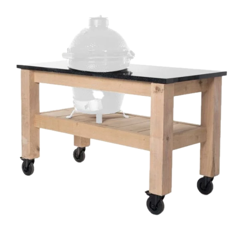 Deze prachtige eikenhouten buitenkeuken is vervaardigd uit een duurzame en solide houtsoort die garant staat voor jarenlang gebruik. Met haar stevige en massieve blokpoten straalt de tafel een robuuste kracht uit. De harmonieuze combinatie van donker natuursteen en licht eikenhout creëert een perfecte balans. Het composieten werkblad biedt voldoende ruimte voor het bereiden van gerechten of het plaatsen van accessoires.