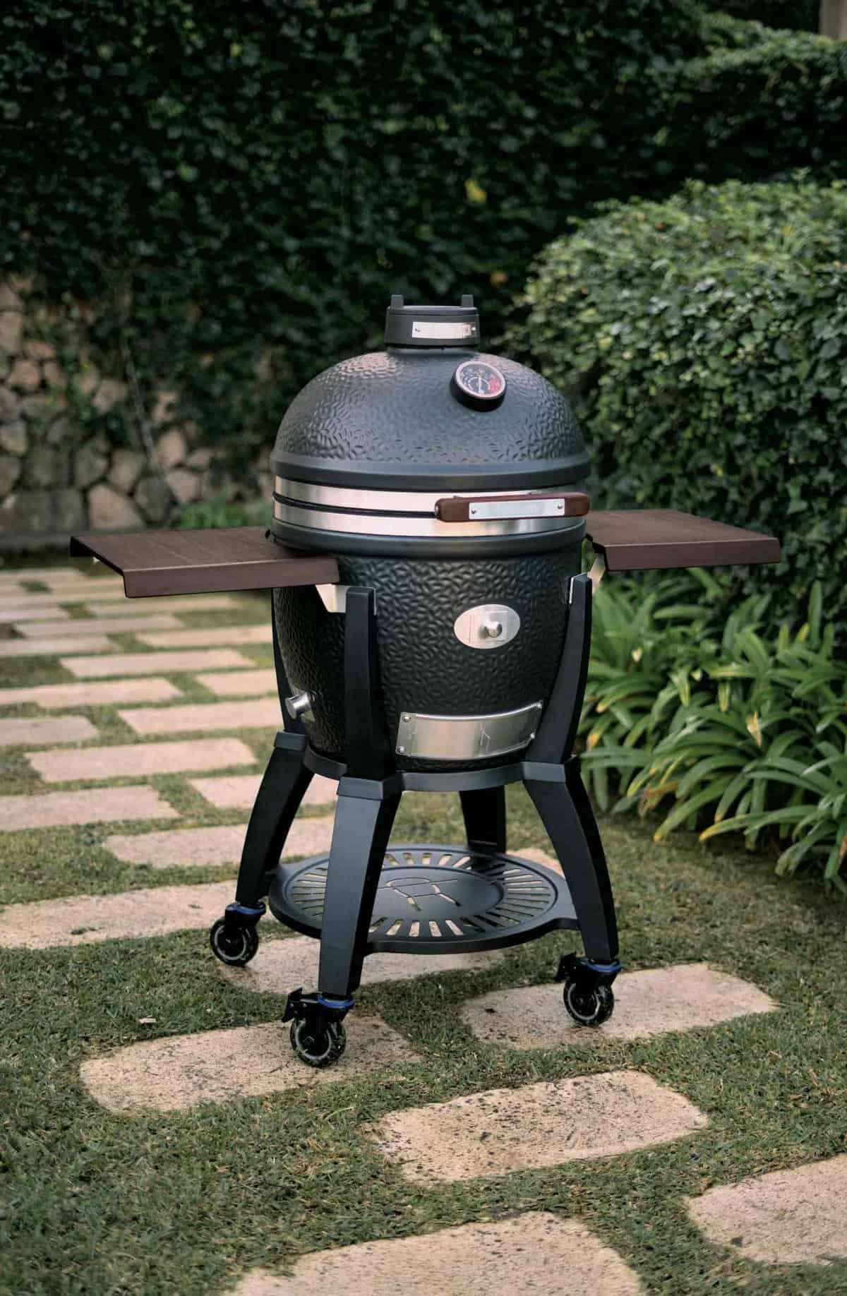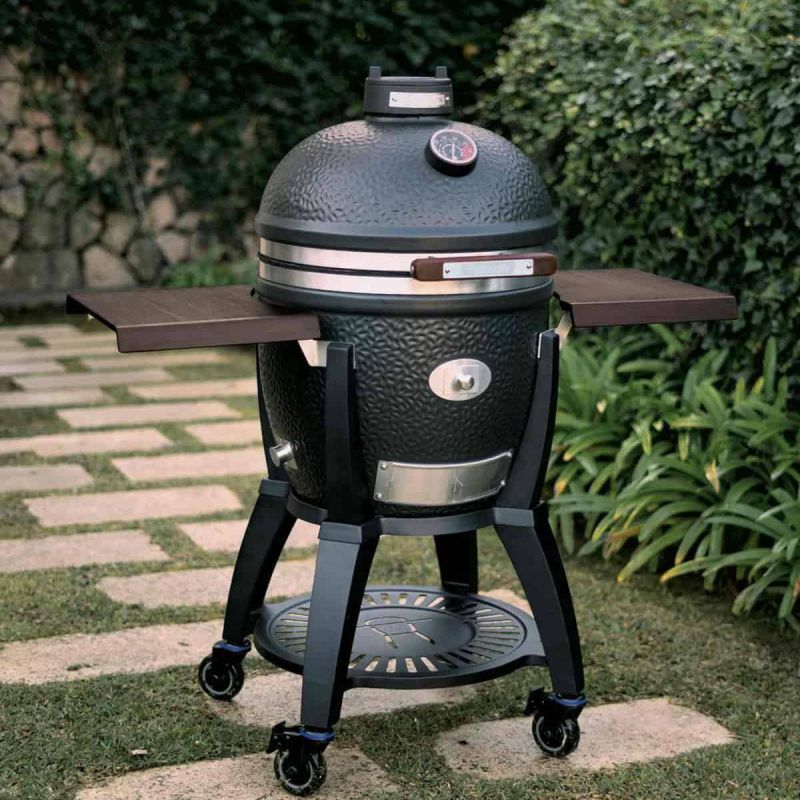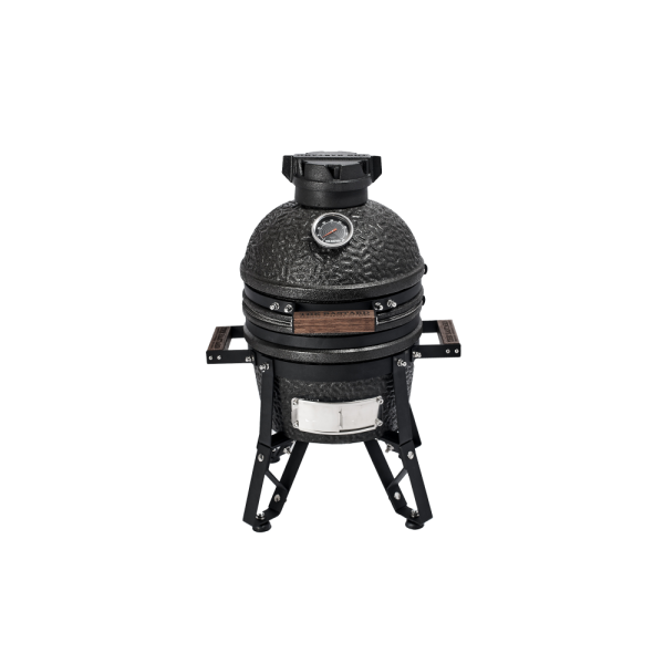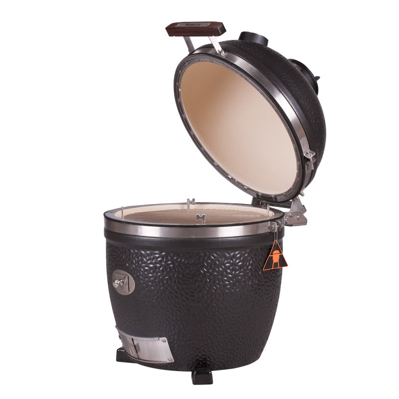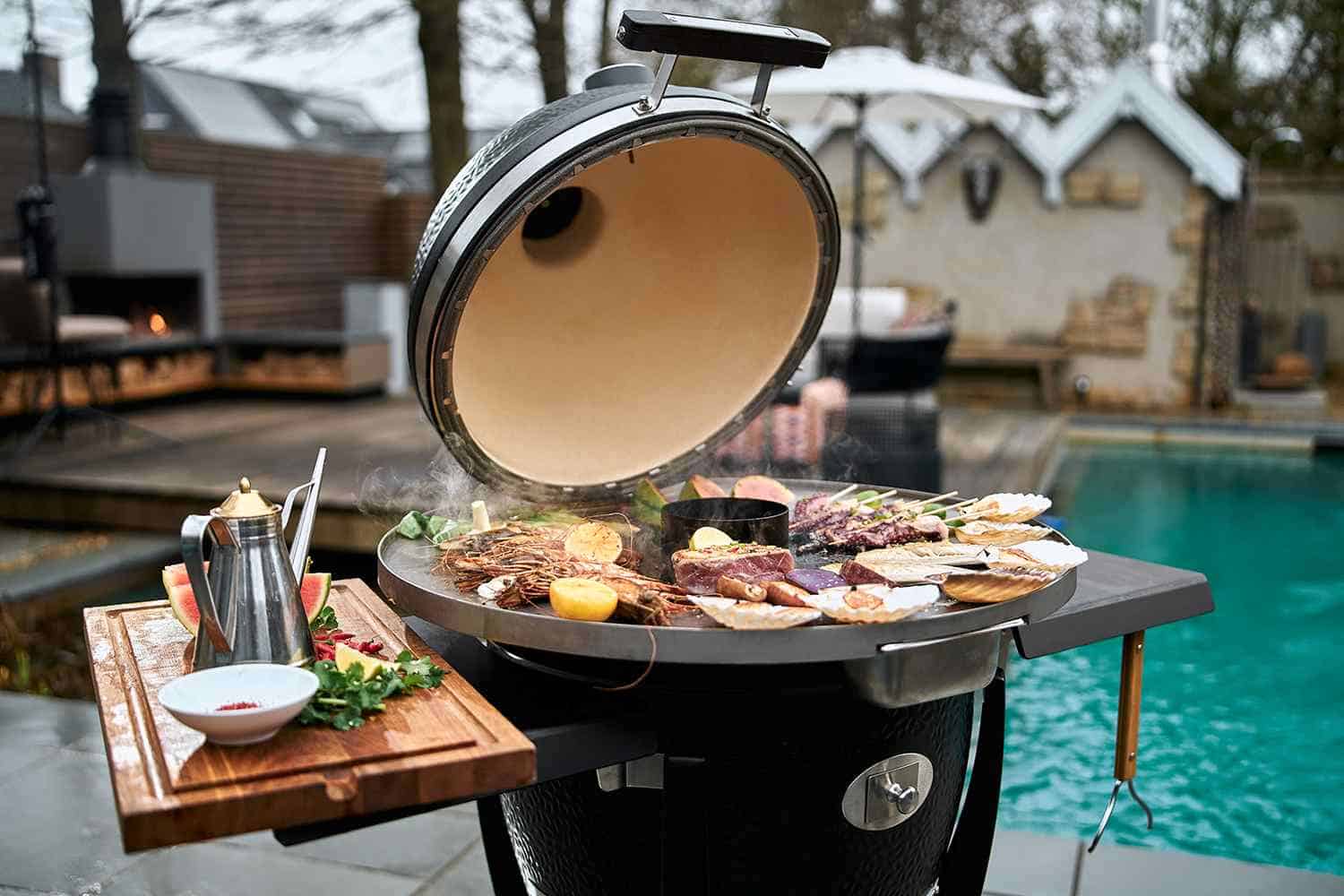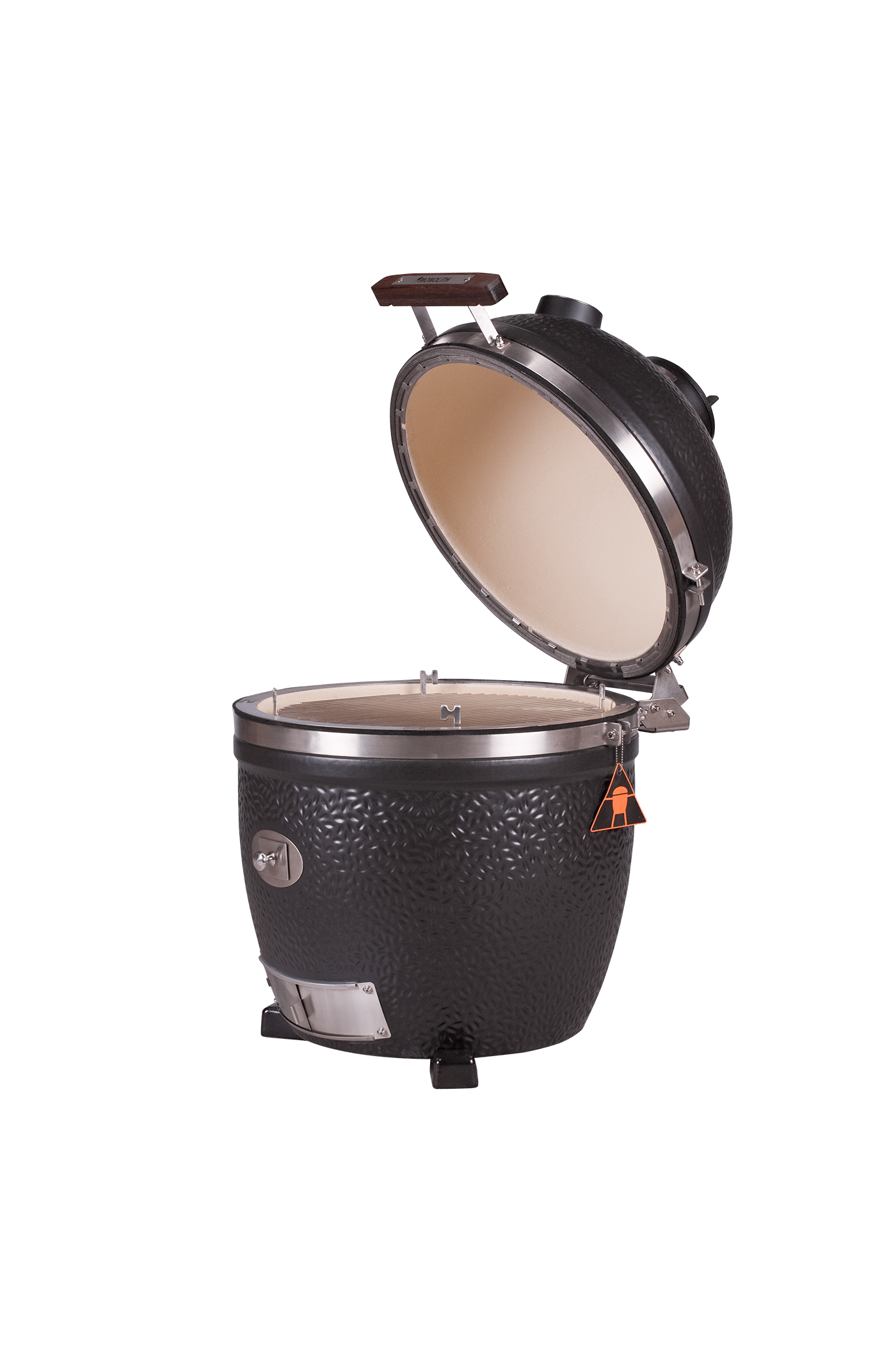 De barbecue is gemaakt van hoogwaardige silikaatkeramiek met levenslange garantie en voorzien van het slimme Smart Grid System (SGS). Daarmee creëer je moeiteloos verschillende temperatuurzones en bereid je meerdere gerechten tegelijk. De deckelgreep met LED-verlichting zorgt bovendien voor optimaal zicht, ook ’s avonds. Het matzwarte onderstel van diepgetrokken staal en de zware bamboe zijtafels geven de kamado een stijlvolle, moderne uitstraling die past in elke buitenkeuken.