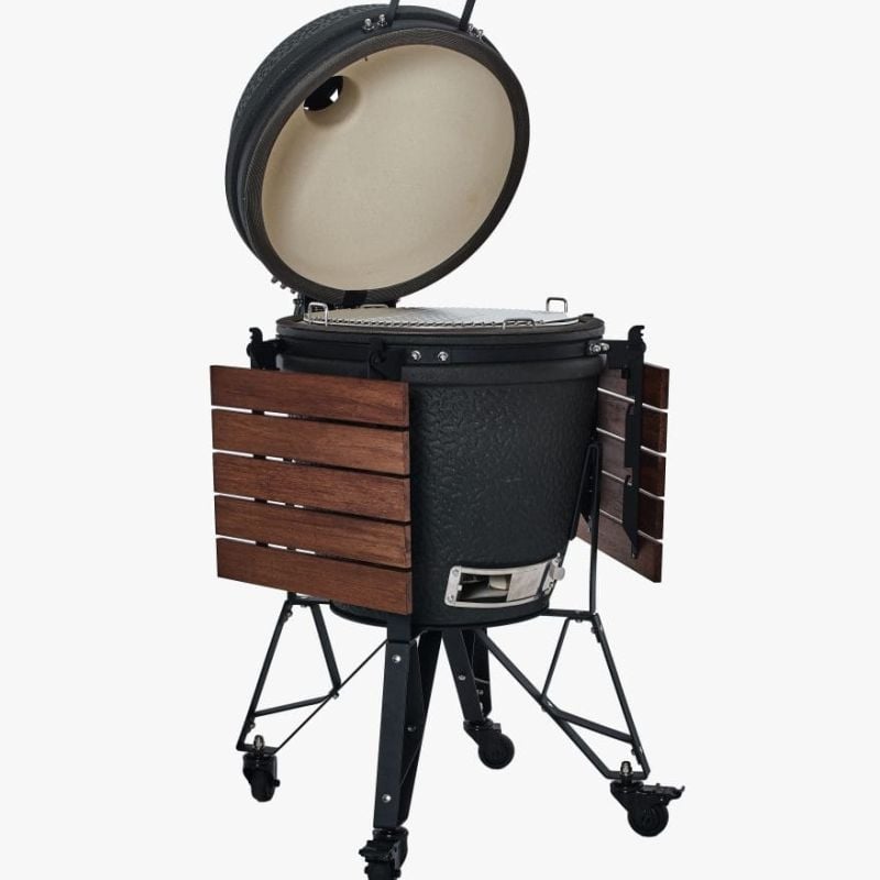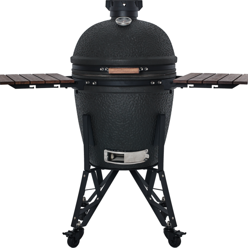 De The Bastard Urban Large Complete biedt alle ruimte en kracht die je nodig hebt voor grote BBQ-sessies. Zijn robuuste constructie en nauwkeurige luchtregeling maken hem geschikt voor elk seizoen – van zomerse grillavonden tot winterse slowcooksessies. De matzwarte afwerking geeft de kamado een moderne, industriële uitstraling die in elke buitenruimte past.