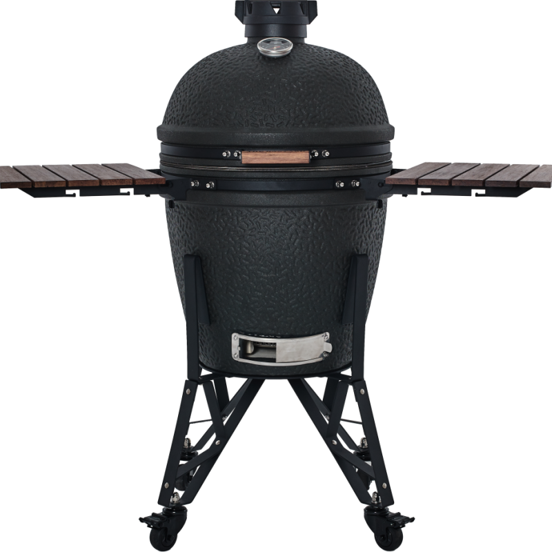De The Bastard Urban Large Complete biedt alle ruimte en kracht die je nodig hebt voor grote BBQ-sessies. Zijn robuuste constructie en nauwkeurige luchtregeling maken hem geschikt voor elk seizoen – van zomerse grillavonden tot winterse slowcooksessies. De matzwarte afwerking geeft de kamado een moderne, industriële uitstraling die in elke buitenruimte past.