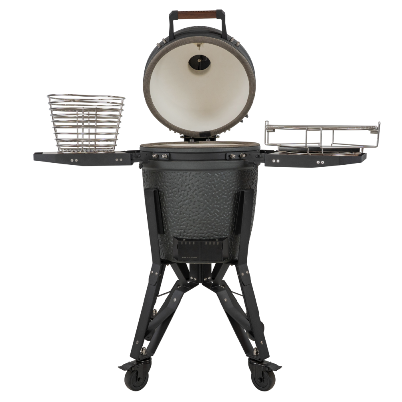 - Volledige set: geleverd met RVS-rooster, plate setter, kolenmand en onderstel met wielen.