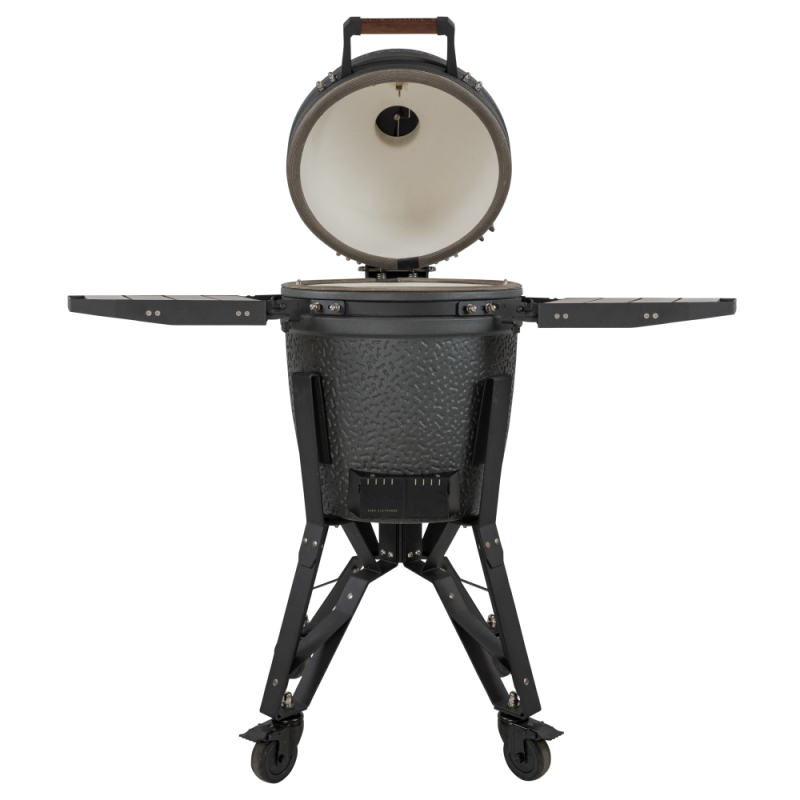 De VX Medium Complete is gebouwd voor balans: formaat, prestaties en stijl komen samen in één robuust ontwerp. De keramische behuizing houdt warmte stabiel vast en reageert direct op elke aanpassing van de luchttoevoer. Of je nu een stukje zalm rookt, pizza bakt op hoge temperatuur of een procureur langzaam gaart – deze kamado levert constante resultaten met minimale moeite. Met zijn industriële keramiek, vernieuwde VX-constructie en complete uitrusting is dit model een van de meest veelzijdige kamado’s uit het assortiment van The Bastard.