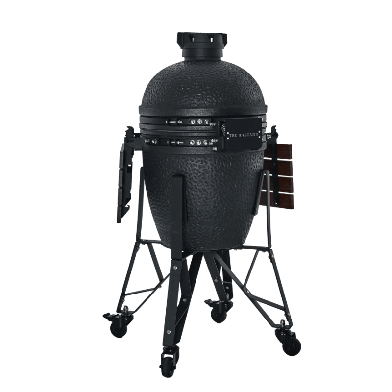 De The Bastard Urban Medium Complete staat stevig op een stalen frame met vergrendelbare wielen, zodat je hem eenvoudig kunt verplaatsen. De kenmerkende matzwarte afwerking geeft deze kamado een moderne uitstraling die perfect past in elke tuin of buitenkeuken. Met zijn nauwkeurige temperatuurregeling en veelzijdige kookmogelijkheden is dit model geschikt voor slowcooking, grillen, roken, koken én bakken.