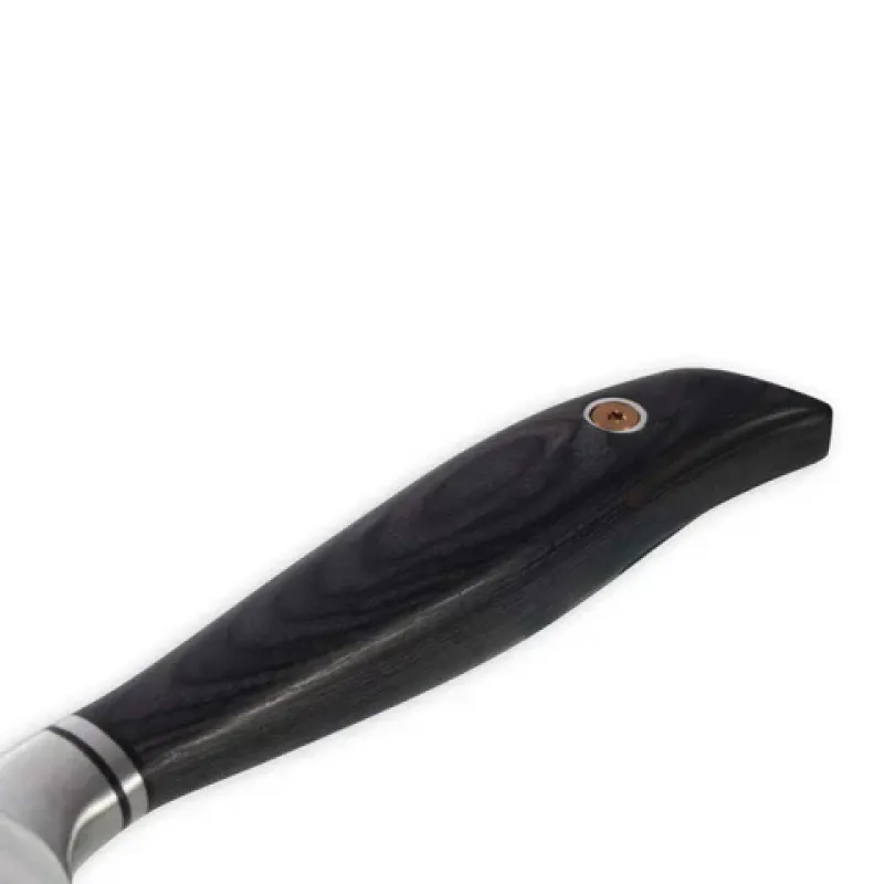 De Blacksmith-serie van Messermeister combineert traditioneel vakmanschap met moderne technologie. Dit mes is uit één stuk roestvrij staal gesmeed en precisie geslepen voor een lichtgewicht en perfect uitgebalanceerde snijervaring. De ergonomische Ebony Pakkawood handgreep biedt een luxe uitstraling en ligt comfortabel in de hand.