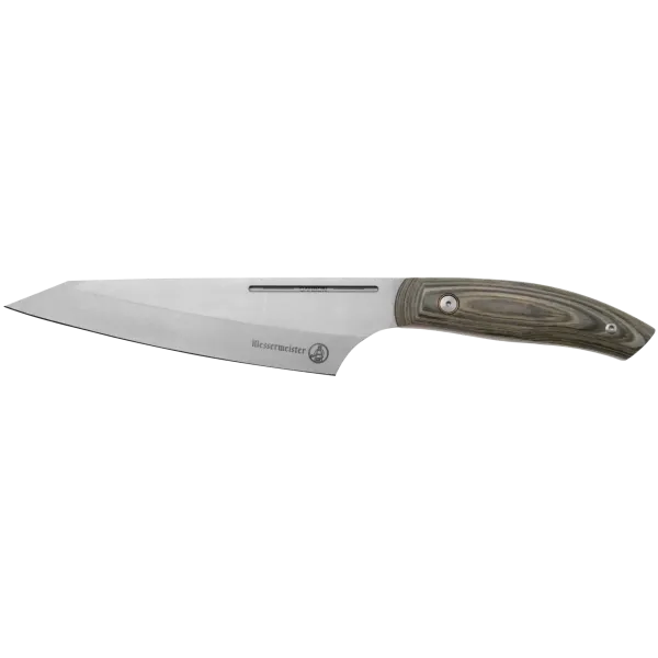 Het Messermeister Oliva Luxe Koksmes is een onmisbaar instrument voor de serieuze foodie. Met een prachtig handgevormde handgreep van Italiaans olijfhout en een ambachtelijk gesmeed lemmet, biedt dit mes niet alleen functionaliteit, maar ook een vleugje elegantie. Het dun geslepen profiel zorgt voor een vlijmscherpe snede, waardoor hakken, snijden en blokjes maken moeiteloos en efficiënt wordt.